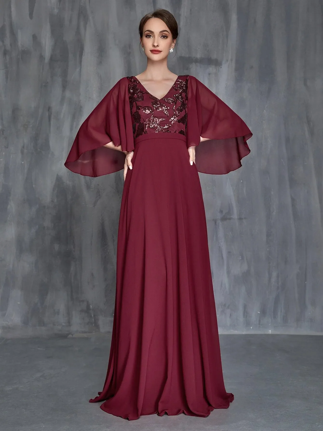 Womens‘ Flounce Sleeve Contrast Sequin Chiffon Dress